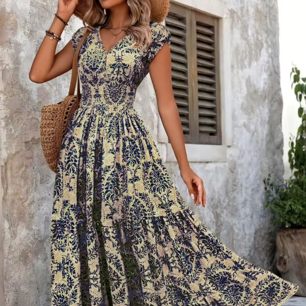 Vestido Longo Belle Amour — Manga Bufante e Decote Quadrado Elegante